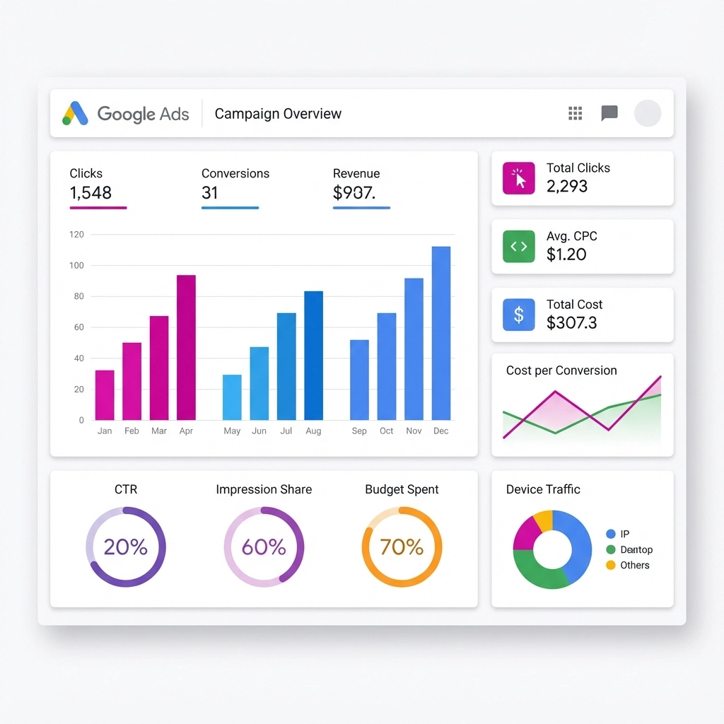The fix: Start with search campaigns and manual bidding for your first 30 days. Once you've gathered at least 30 conversions, then you can gradually introduce automated bidding strategies. This gives Google's algorithms actual data about what works for your specific business.