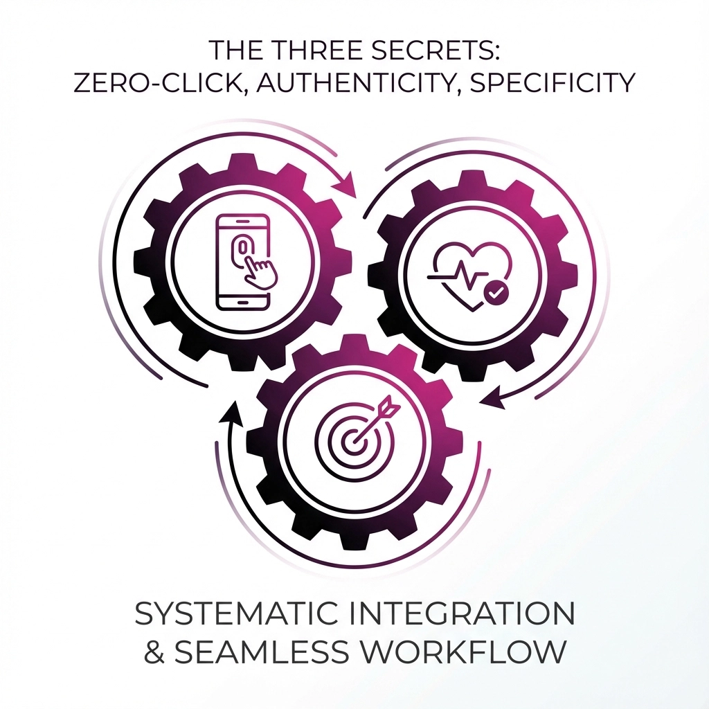Your authentic storytelling (Secret #2) builds trust and authority. Your platform-native lead capture (Secret #1) removes friction. Your specific value offers (Secret #3) convert browsers into buyers.