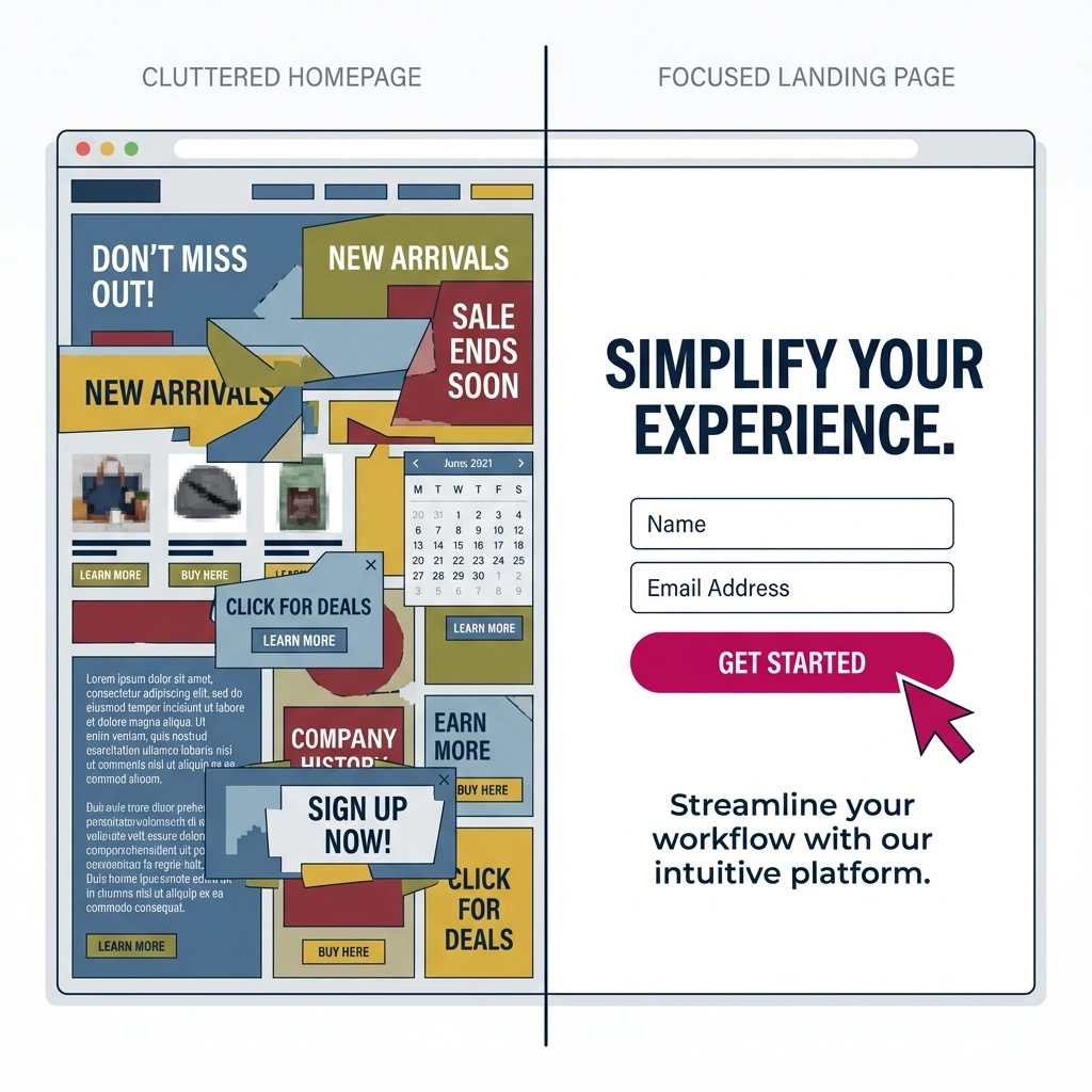 Here's where most people mess up big time. They spend money on ads or create great content that drives traffic, then send everyone to their homepage. That's like inviting someone to dinner and then making them hunt through your entire house to find the dining room.